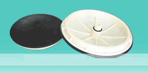 可变微孔曝气器设计成略凸起拱形面,采用ABS工程塑料为主体。膜片具有抗附着表面的专用进口橡胶(EPDM),通过加工制成,膜片开孔选用德国进口数控刀开孔,保证了孔的质量和精度。曝气器在充氧曝气时,主体盘面设计了四条送气槽,使进入的空气通过止回阀缓冲后直接送至曝气头中央保证膜片一次性低阻力轻松打开。膜片采用罗纹反锁机械化装配,确保膜片永不脱落。进气时布气膜上微孔自行鼓胀胀开,确保空气通过。在停止曝气时,布气膜上的可变微孔呈封闭状态,由于布气膜的可变微孔自行扩张和收缩,避免经往曝气器微孔受堵现象。其次在曝气器的底盘设有止回阀装置,当管道系统停止供气时阻止混合液进入布气支管,这样可避免支管内进入混合液而被堵塞。进入的空气不需过滤,间歇曝气均不堵塞,并对可变微孔曝气器类普遍出现的布气气膜易吹膜撕裂和打不开膜片或膜片受堵现象作很大的技术改进。